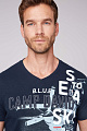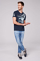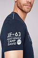 Нашивки и принты на  футболке CAMP DAVID вдохновлены летным экипажем. Оформление на лицевой стороне состоит из фотопринта, аппликаций и вышивки. Небольшой принт этикетки с нашивкой украшает правый рукав, нашивка с этикеткой в ​​верхней части спины. Удобная футболка выполнена из пряжи slub и имеет мужской V-образный вырез.