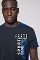 Play & Win! Желание заняться спортом, при видя футболки с круглым вырезом от Кэмп-Дэвида с ее прохладным цветным дизайном. Контрастные вставки оформлены на плечах и по бокам. Прохладные принты с логотипом дополняют спортивный образ. Модель имеет рост 188 см и носит размеры М.