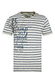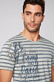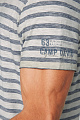 Футболка в полоску от CAMP DAVID в винтажном стиле. Этот эффект усиливает открытый край на круглом вырезе. Принты этикеток в тон продолжаются справа спереди. Небольшой принт украшает левый рукав. Футболка – это классика повседневной одежды. Рост модели 185 см, размер М
