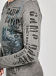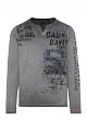 Rough & Ready! Повседневный фотопринт простирается на длинном рукаве лонгслива. Винтажный дизайн, окраска Oil Dyed и другие плакатные принты придают лонгсливу аутентичный дизайн свойственный моделям CAMP DAVID из линейки Green. Текстурованная пряжа и отделка из твила на V-образном вырезе и плечах привлекают внимание. В нижней части бокового шва также нанесены нашивки из твила.