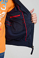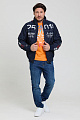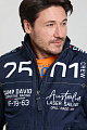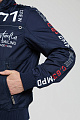 Куртка необходимая для переходного сезонного периода в морском стиле. Морское оформление ввиде широких лент, часть из них с прорезиненным логотипом, создают стильный дизайн. Практичная куртка имеет воротник-стойку внутри с вставкой в рубчик и манжетами в рубчик на рукавах и подоле. Застежки-молнии на карманах и на одном внутреннем кармане. Рост модели составляет 188 см, размер М.