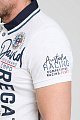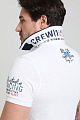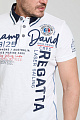 Контрастный трикотажный воротник из саржи сразу привлекает внимание к поло CAMP DAVID, а его низ также отличается особым дизайном. Принты на этикетках спереди и сзади акцентированы слоеными принтами. Контрастная строчка, манжеты на рукавах и боковые разрезы делают образ идеальным. Рост модели составляет 188 см, размер М