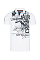 Множество высококачественных рисунков и деталей придают поло CAMP DAVID спортивный стиль. Спереди  фотопринт с аппликациями. Ленты и контрастные швы украшают плечи. Воротник из трикотажа с цветными полосками имеет стильный логотип на нижней стороне, а планка с пуговицами внутри отделана материалом разного состава. Очень стильное поло!