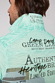 Поло в повседневном стиле для отдыха. Трикотажное полотно  Pikee изготовлено из структурированной пряжи, усиливает эффект неравномерного цвета специальной окраской. Типичные для бренда принты  с патчами и вышивкой можно найти на левой передней панели и принтом на спине. Интересный дизайн в  деталях: смесь саржи на воротнике, разрез на пуговицах и на плечах. Классный бренд-классный стиль! Модель имеет рост 189 см и носит размеры М.