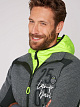 Вязаная флисовая куртка от CAMP DAVID сочетается с функциональностью и стильным дизайном. Она изготовлена из разных материалов, имеет яркую стеганую подкладку и стеганую вставку на капюшоне, которую можно снять. Рукава, боковые стороны и планки на карманах выполнены из черного Seatex. Маленькие аппликации с этикетками украшают переднюю часть и рукава. Манжеты на рукавах и по низу изделия создают хорошую отделку. Модель ростом 190 см носит размер. М.