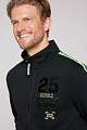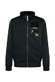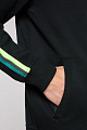 Глянцевые 3D-гелевые принты украшают левую переднюю часть и, что особенно важно, заднюю часть. Полосатые ленты, частично светоотражающие, ниспадают на плечи и рукава.Функциональными являются карманы на молнии и материал толстовки, так как сшитый трикотаж легкий и дышащий. Рост модели составляет 188 см, размер M.