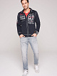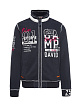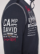 Яркие аппликации с логотипом, контрастные ленты и швы придают толстовке в спортивном стиле аутентичный вид CAMP DAVID. Передняя и задняя часть, а также рукава - брендированные. Ленты подчеркивают плечи и расставляют акценты на внутренней стороне карманов. Воротник-стойка уплотнен ребрами жесткости с внутренней стороны.