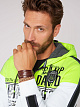 Толстовка с капюшоном от CAMP DAVID отличается множеством интересных деталей. Цветовая отделка и нанесение этикеток заметны сразу. Не сразу обнаруживаются широкие полосатые тесьмы, которые проходят через плечи и рукава. Еще одна тесьма предназначена для капюшона, который изготовлен из вафельного пике. Разрезной карман-кенгуру завершает дизайнтолстовки в морском стиле. Модель ростом 183 см носит размер. М.