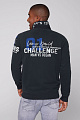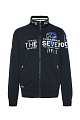 Толстовка от CAMP DAVID  универсальна и создает  спортивный стиль.Толствока украшена аппликациями с морскими этикетками спереди и сзади, а также на рукаве. Вышивка на этикетке и широкая лента подчеркивают воротник-стойку. Практичные карманы на молнии дополняют повседневный образ. Рост модели составляет 186 см,размер M.