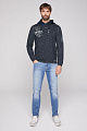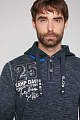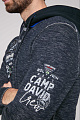 Пуловер с капюшоном CAMP DAVID приобретает повседневный вид винтажной одежды благодаря специальной пряжи  и декоративным швам, обращенным наружу. Привлекателен капюшон из свитера с контрастной лентой и маленькой планкой на пуговицах. Наклейки на этикетках и небольшие рисунки дополняют классный дизайн. Модель имеет рост 188 см и носит размеры М.