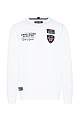 Многие изображения логотипов выполнены на пуловере с круглым вырезом в виде принтов и патчей. Самые большие принты нанесены на спину и рукава. Небольшое изображение и нашивки на лицевой стороне. Ленты и рисунок в рубчик украшают плечевую часть. Свитер из хлопкового трикотажа - отличный вариант для более прохладных дней. Рост модели составляет 186 см, размер M.