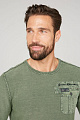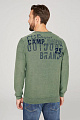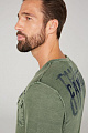 Непринужденный и довольно повседневный образ сочетается с пуловером CAMP DAVID с круглым вырезом. Трикотажный пуловер левого кроя выполнен со стреловидными швами в области плеч, с нагрудным карманом из твила и имеет крупный принт с вышивкой на спине. Обработка "на камнях" придает винтажный вид пряже.