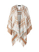 Пончо выполнено из мягкой ткани на основе натуральной шерсти. Украшено принтом с клеткой гленчек и дополнено краями контрастного цвета с логотипом Marc Cain. Изящная бахрома в тон пончо придает изделию стильный вид.