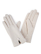 Бежевые перчатки выполнены из тонкой натуральной кожи. Дополнены отделкой из шерсти на внешней стороне, закругленным вырезом на манжете и фирменным логотипом. Изящные перчатки для ярких и женственных образов в холодное время года.
