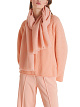 Длинный мягкий шарф изготовлен из 100% натуральной шерсти. Украшен аккуратной бахромой и изящной надписью логотипа. Размеры шарфа: 43 x 205 см.