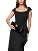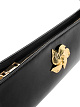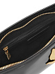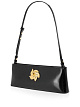 Черная сумка выполнена из натуральной кожи. Дополнена регулируемым ремнем, молнией и декоративным золотистым цветком. Эффектная сумка для изысканных образов.