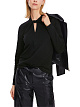 Облегающая блуза выполнена из натурального хлопка с добавлением эластана. Дополнена округлым вырезом с декоративным узлом и небольшим V-образным вырезом, а также длинными рукавами. Элегантная блуза для деловых образов.