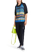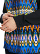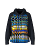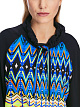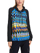 Синяя толстовка выполнена из легкой ткани с ярким этническим принтом. Дополнена высоким воротником с завязками и длинными рукавами-реглан с манжетами. Прекрасно подходит для расслабленных образов в городском стиле.
