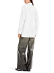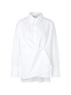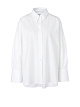 Белая блуза свободного кроя выполнена из натурального хлопка. Дополнена отложным воротником, длинными рукавами с широкими манжетами, удлиненной задней частью и разрезами по бокам. Изюминка модели — дополнительная пуговица для асимметричной драпировки. Такая стильная рубашка станет эффектным акцентом вашего образа.