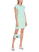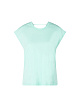 Нежно-зеленая футболка приталенного кроя выполнена из натурального хлопка с добавлением эластана. Дополнена округлым вырезом спереди и V-образным разрезом сзади. Такая изящная футболка идеально сочетается с воздушными юбками и брюками.