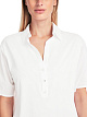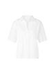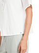 Белая рубашка выполнена из натурального хлопка с добавлением эластана. Дополнена отложным воротником с V-образным вырезом и планкой на пуговицах, короткими рукавами и плиссировкой сзади. Идеально подходит для образов в строгом стиле.