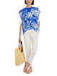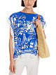 Блуза из шелка. Привлекательной особенностью этой блузки-слипа является ее передняя часть с витиеватым принтом Francis. Благодаря чистому шелку она также поражает своим элегантным блеском и комфортом. Спинка выполнена из мягкого хлопкового трикотажа однотонного цвета. Прямой крой без рукавов с большими разрезами по бокам уникален. Вырез лодочкой подчеркивает стильный образ.