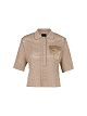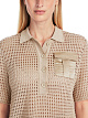 Коричневое сетчатое поло выполнено на основе сочетания натурального хлопка и вискозы. Дополнено отложным воротником на пуговицах и короткими рукавами, а также атласным нагрудным карманом с клапаном. Изысканное поло для элегантных летних образов.Также имеет маркировку «Knitted in Germany» («Связано в Германии»). Это означает, что пряжа вяжется на ультрасовременных вязальных машинах на фирменном производстве в Германии.