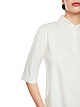 Повседневная и элегантная рубашка-поло прямого кроя с рукавами 3/4. Она изготовлена из 100% хлопка и поэтому приятна на ощупь. Воротник расшит мелкими декоративными жемчужинами и пайетками, что придаёт рубашке элегантность.