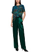 Шикарная зеленая блуза свободного кроя выполнена из сочетания натурального шелка и мягкой вискозы с эластаном. Украшена мистическим принтом с красочными птицами. Изделие дополнено округлым вырезом, короткими рукавами и декоративной пуговицей спереди. Роскошная блуза станет изюминкой любого образа.