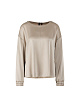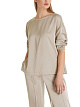 Элегантный пуловер свободного кроя  выполнена из блестящего атласа на основе триацетата. Дополнен округлым вырезом, спущенной линией плеча, длинными рукавами и эластичными манжетами. Разрезы по бокам и детали, сшитые вручную, дополняют дизайн.