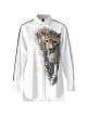 Белая блуза кроя оверсайз выполнена из органического хлопка и украшена принтом с леопардом. Дополнена классическим воротником, длинными рукавами с манжетами и контрастными полосками. Такая элегантная блуза внесет разнообразие в ваш повседневный гардероб.
