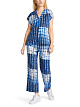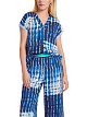 Блуза прямого кроя выполнена из струящейся 100% вискозы. Украшена сплошным принтом в стиле батик и дополнена V-образным вырезом и короткими рукавами с сетчатой окантовкой для создания нежного кружевного эффекта. Удлиненная задняя часть, а также разрезы по бокам завершают дизайн. Для создания комплекта сочетайте блузу с брюками с аналогичным принтом.