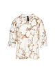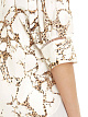 Блуза сводного кроя с узким воротником-стойкой, V-образным вырезом и укороченными объемными рукавами, которые подчеркнуты кружевной тесьмой. Блуза изготовлена из высококачественной смесовой ткани шелка с хлопком с рисунком.