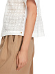 Блуза свободного кроя выполнена из мягкого полупрозрачного материала. Дополнена отложным воротником, планкой с пуговицами и укороченными рукавами с широкими манжетами, украшена кружевом по всей поверхности. Декоративные клапаны спереди создают стильный акцент.