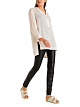 Легкая летняя туника имеет широкий крой, полупрозрачна и изготовлена из рами – материала, по свойствам похожего на лен. Спинка туники немного длиннее, по бокам есть разрезы.