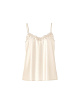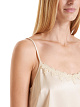 Стильный блестящий топ с регулируемыми бретельками и прямым разрезом. Атласная верхняя часть украшена на декольте романтической кружевной отделкой, что придает женственный вид нижнего белья.