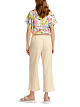 Широкие брюки прямого кроя выполнены из эластичной ткани на основе натуральных льна и хлопка. Дополнены эластичным поясом со шнурком с цветными нашивками, а боковые карманы дополняют спортивный стиль. Такие летние брюки отлично подойдут для создания лаконичных повседневных образов.