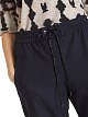 Зауженные темно-синие брюки выполнены в спортивном стиле из эластичной ткани с добавлением вискозы и натуральной шерсти. Брюки дополнены карманами, а эластичный пояс с завязками обеспечивает идеальную посадку. Отличные повседневные брюки на каждый день.