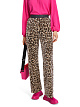 Леопардовые широкие брюки выполнены из эластичной ткани с добавлением вискозы. Дополнены широким поясом с фирменным логотипом. Эффектные брюки для роскошных образов.