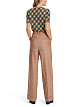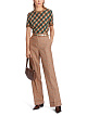 Коричневые укороченные брюки в клетку выполнены из мягкой ткани с добавлением натуральной шерсти и вискозы. Дополнены шлевками для ремня, карманами и подворотами. Стильные и элегантные брюки для деловых образов.