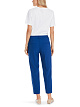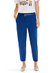 Синие укороченные брюки выполнены из эластичной ткани с добавлением вискозы. Дополнены поясом со шлевками, карманами и элегантными простроченными стрелками. Базовые брюки для стильных повседневных образов.