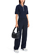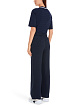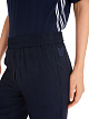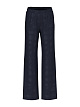 Темно-синие брюки свободного кроя выполнены из струящейся ткани с жаккардовым принтом в тон. Дополнены эластичным поясом и прорезными карманами. Стильные брюки для расслабленных образов с кроссовками или кедами.