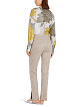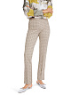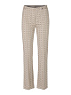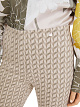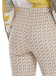Бежевые брюки выполнены из мягкой жаккардовой ткани с графическим рисунком. Дополнены эластичным внутренним поясом, простроченными складками и небольшими разрезами на брючинах по бокам. Лаконичный логотип создает фирменный акцент. Такие элегантные брюки подойдут и для деловых, и для расслабленных повседневных образов.