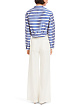 Белые широкие брюки выполнены из льна и вискозы с добавлением эластана. Дополнены поясом со шлевками для ремня, карманами и огненными стрелками. Стильные брюки для деловых образов.