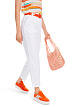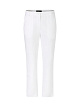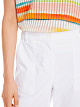 Белые укороченные брюки выполнена из натурального хлопка с добавлением эластана. Дополнены шлевками для ремня и карманами, а также изящной бахромой по краям брючин. Такие брюки станут основой ярких летних образов.