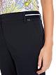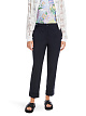 Темно-синие укороченные брюки выполнены из сочетания натурального хлопка и вискозы с добавлением эластана. Дополнены шлевками для ремня и карманами, стрелками и подворотами на брючинах. Элегантные базовые брюки для вашего гардероба.