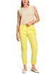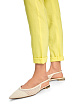 Желтые брюки свободного кроя выполнены из сочетания натурального льна и вискозы с добавлением эластана. Дополнены эластичным поясом, карманами и элегантными подворотами на брючинах. Такие лаконичные брюки прекрасно впишутся и в повседневные, и в более деловые образы.