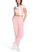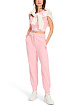Розовые спортивные брюки выполнены из ткани на основе натурального хлопка. Дополнены эластичным поясом с завязками, карманами, манжетами на брючинах и логотипом. Идеально подходят для расслабленных образов.