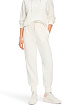 Белые спортивные брюки выполнены из ткани на основе натурального хлопка. Дополнены эластичным поясом с завязками, карманами, манжетами на брючинах и логотипом. Идеально подходят для расслабленных образов.