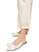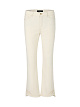 Изюминкой  являются расшитые пайетками и вышитые бахромой брючины. Эти брюки имеют типичный пятикарманный дизайн и женственный крой. Укороченные брюки слегка расклешёны. Благодаря мягкому хлопковому эластичному материалу эти брюки особенно удобны в носке